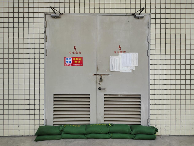 (圖為海峽融合用沙袋封堵變電房和機房,防止內澇)