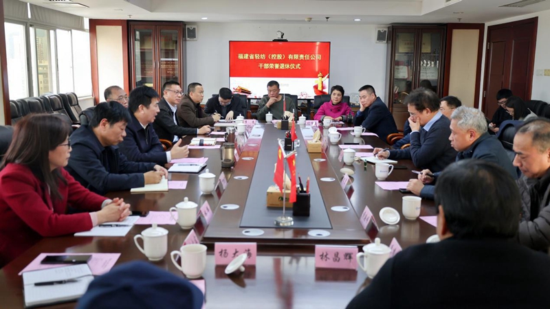 為進一步增強退休干部的政治榮譽感和組織歸屬感,1月31日,福建輕紡舉行干部榮譽退休儀式。會議由公司黨委委員、副總經(jīng)理陳國樑主持,黨委副書記、副董事長、總經(jīng)理鄭書雄參加會議并講話。2023年司管退休干部、年輕干部代表、相關(guān)部室負責(zé)人參加會議。
