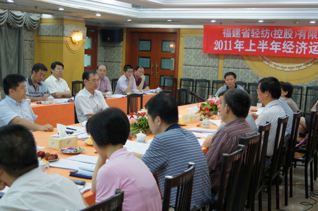 7月18日,省輕紡(控股)有限責任公司在四樓會議室召開半年度經濟運行分析會。控股公司董事長吳冰文、總經理鄭震、副總經理黃國英、陳國樑、總經理助理黃金鏢,各權屬企業主要負責人及控股公司各部室負責人參加了會議,鄭震總經理主持會議。陳國樑副總經理通報了我省上半年經濟運行態勢與宏觀形勢,財務部經理林兵霞通報了控股公司半年度主要經濟數據,各權屬企業做了匯報交流發言。上半年控股公司實現營業收入28.16億元,同比增長16.73%。