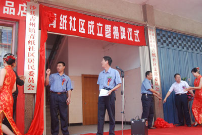 沙縣副縣長樂榮光、青州鎮(zhèn)黨委書記羅劬也在揭牌儀式上發(fā)表了熱情洋溢的講話。隨后,在鞭炮聲和禮花綻放的喜慶氣氛中沙縣副縣長樂榮光、青州鎮(zhèn)黨委書記羅劬;青山紙業(yè)公司黨委書記陳文水、副書記張發(fā)柳共同為中共沙縣青州鎮(zhèn)青紙社區(qū)支部委員會和沙縣青州鎮(zhèn)青紙社區(qū)居民委員會的正式成立揭牌!