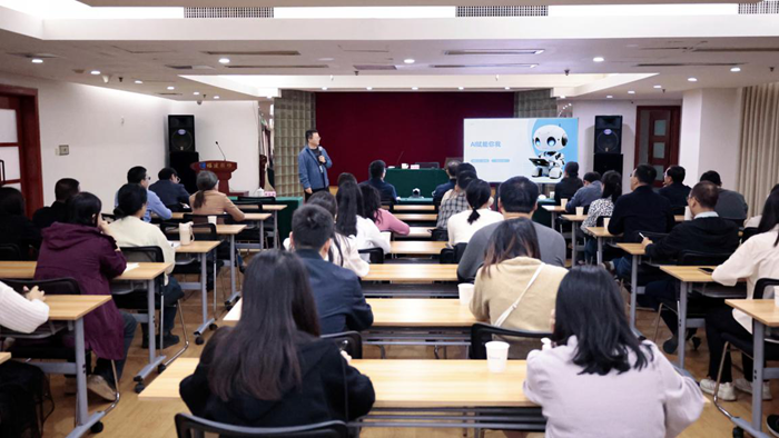 4月10日上午,福建輕紡舉辦2025年度第二期“輕紡大講堂”。本次活動以“AI賦能你我”為主題,特邀福建融合數(shù)智科技有限公司總經(jīng)理池陳清作專題講座。講座通過線上線下相結(jié)合的方式開展,公司領(lǐng)導(dǎo)班子成員、中層管理人員、權(quán)屬企業(yè)領(lǐng)導(dǎo)及公司青年干部共計310人參加。