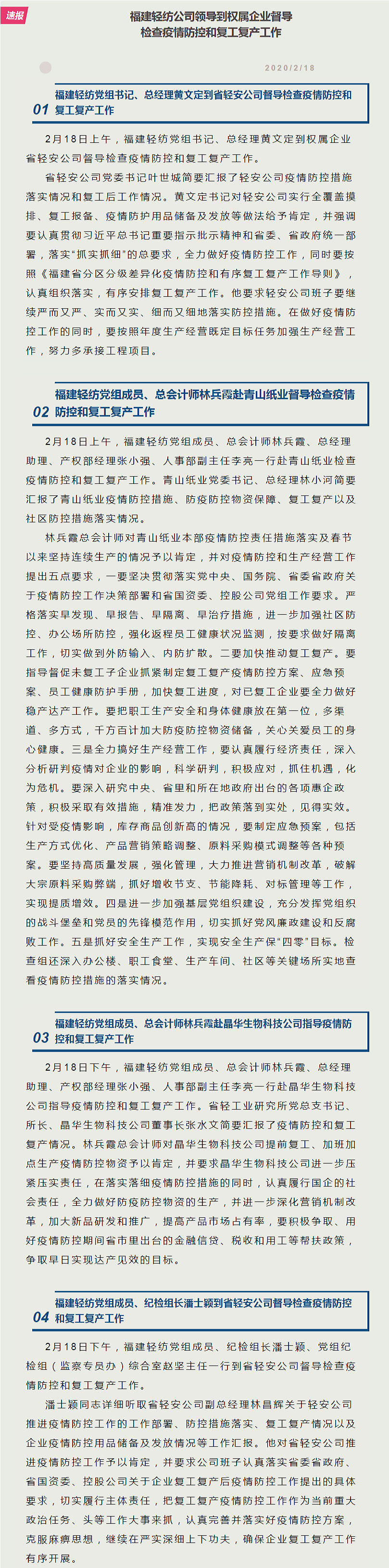福建輕紡公司領導2月18日到權屬企業督導檢查疫情防控和復工復產工作