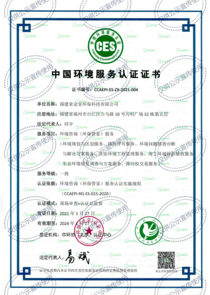 繼2019年末成為全省首家榮獲中國環境保護產業協會AAA信用評級環保咨詢類企業之后,1月27日,金皇環保成為全省首家通過環境咨詢(環保管家)服務中國環境服務認證的企業,服務等級為一級。