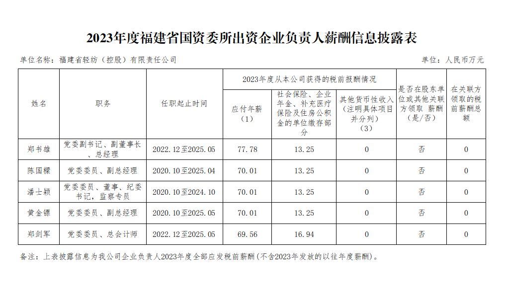福建省國資委所出資企業負責人2023年度薪酬信息披露表