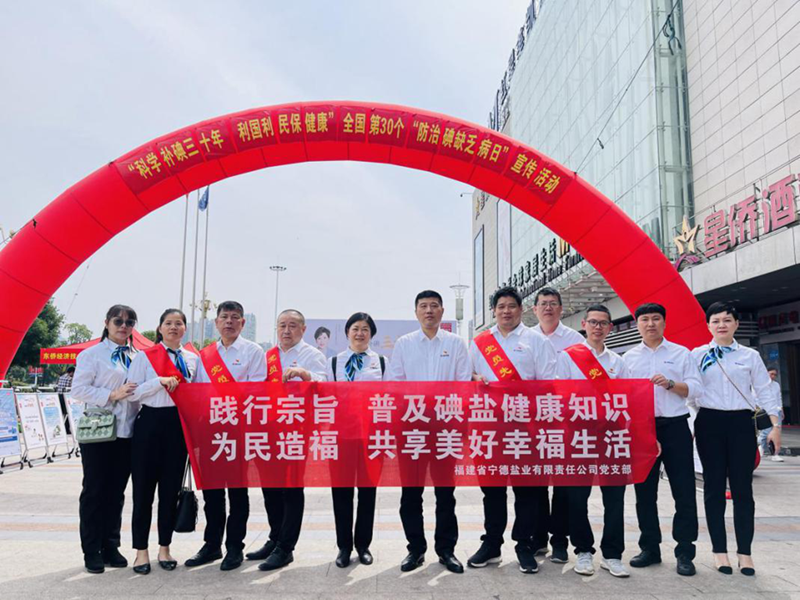 寧德鹽業公司公司黨支部組織黨員干部積極參加5.15宣傳活動,結合開展“踐行宗旨 普及碘鹽健康知識 為民造福 共享美好幸福生活”主題黨日活動。本次系列活動共懸掛宣傳橫幅6條,展板30余塊,發放宣傳資料2000余份,鹽產品300余份,現場接受咨詢350余人次,取得良好的社會效應。