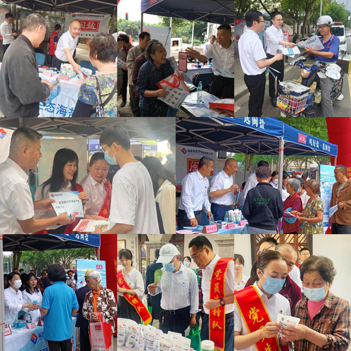 福州鹽業黨總支和福鹽集團機關第一、第二黨支部黨建共建結對,配合福建省衛生健康委員會、福州市疾病預防控制中心、福州市衛生健康委等單位,在福州市鰲峰光明港公園、福州中山紀念堂開展5.15“防治碘缺乏病日”、“全民營養宣傳周”宣傳活動暨“我為群眾辦實事”主題黨日活動。共發放宣傳資料1500余份,現場接受咨詢500余人,受眾人數1000余人。