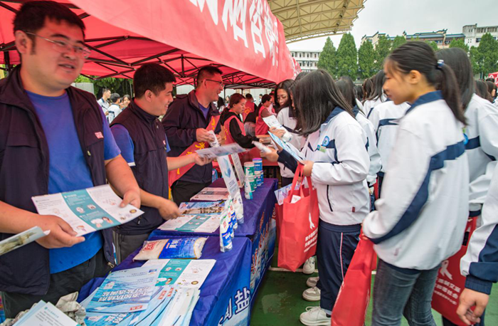 三明鹽業公司黨員服務隊深入學校開展進校園宣傳活動,黨員服務隊耐心細致地解答師生提出的各種相關問題。通過小手拉大手的形式,鼓勵學生做一個健康知識的傳播者,將今天學到的健康知識分享給自己的家人、同學和朋友,讓更多的人了解碘以及碘缺乏病防治知識。