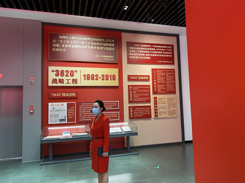 本次展覽以“3820”戰略工程為主線,共分“戰略擘畫”“重大實踐”“賡續奮斗”3個篇章,聚焦經濟、政治、文化、社會、生態文明和黨的領導等6大領域、35個主題,全方位、多角度展現“3820”戰略工程實施30年來福州的發展歷程和輝煌成就,充分反映“3820”戰略工程的科學性、前瞻性、系統性。