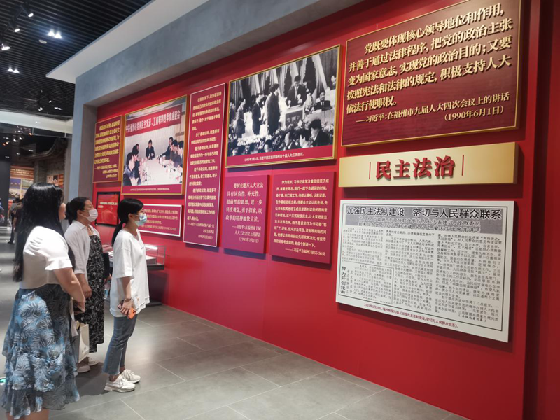 在講解員的引導和介紹下,大家有序進入展廳參觀,認真觀摩了一份份詳盡的歷史文件、一段段珍貴的影像資料、一個個珍藏的老物件,深入了解了“3820”戰略工程的精髓要義和深刻內涵。展館中,林則徐紀念館、鼓嶺老建筑、金沙村民宅,運用了融合沉浸式影像空間、大型投影、互動翻書等多媒體、數字化聲光電技術,讓大家仿佛置身當年的歷史情境,更加真切體會到習近平總書記人民至上的價值追求、放眼世界的宏大格局。