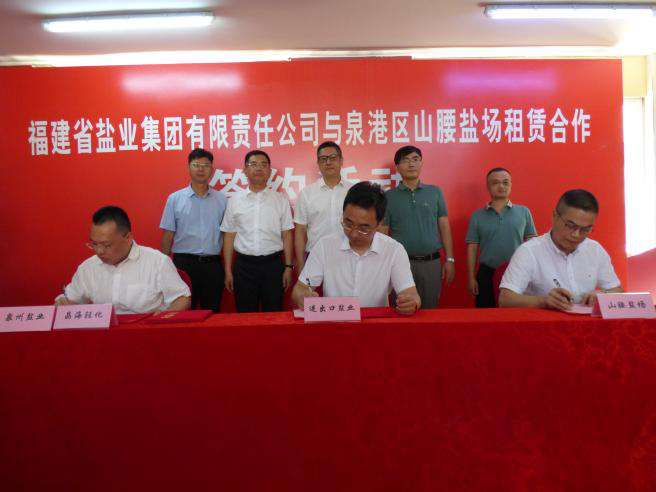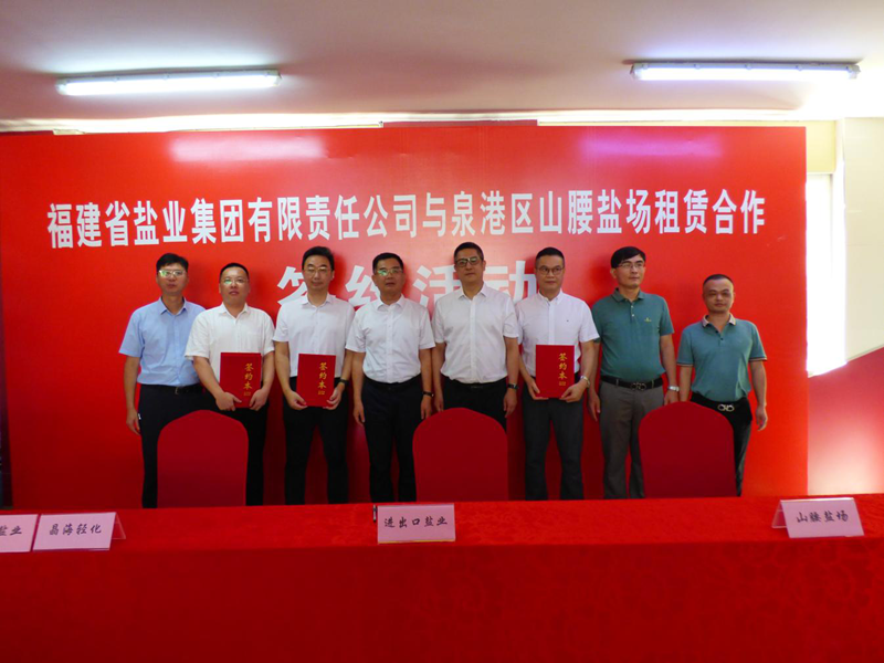 7月13日上午,福鹽集團與泉州市泉港區山腰鹽場在福鹽集團權屬企業晶海輕化公司舉行經營合作簽約儀式。泉港區常務副區長陳劍峰、福鹽集團黨委副書記、總經理莊燦陽到會并致辭。山腰街道黨工委等相關簽約單位的領導出席簽約儀式。