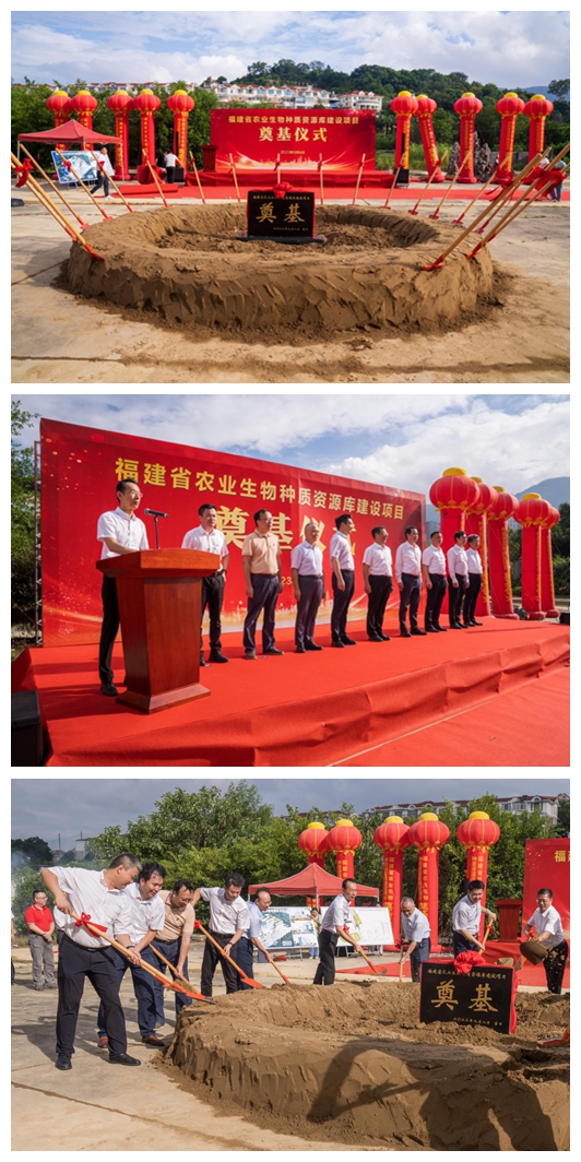 9月8日上午,由福建省建筑輕紡設計院有限公司承擔的福建省農業生物種質資源庫建設項目全過程工程咨詢項目奠基儀式在晉安區省農科院海峽現代農業示范園隆重舉行。省農業科學院黨委書記肖錚、院長余文權、副院長魏輝,省農業農村廳副廳長梁全順,省科技廳副廳長游建勝,省林業局二級巡視員徐文輝及省發改委、省財政廳、福建農林大學等省直單位相關領導蒞臨現場。我司黨委書記、董事長、總經理陳家春出席奠基儀式。