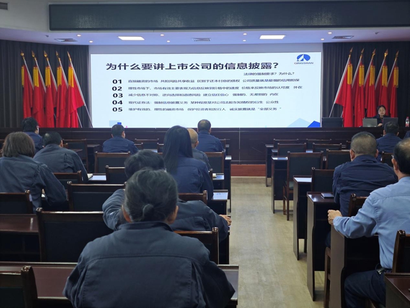 根據《中華人民共和國證券法》《上市公司信息披露管理辦法》及上海證券交易所上市公司自律監管指引等相關制度,青山公司總經理助理、證券事務代表徐慧镕以《注冊制下上市公司信息披露》為題,結合公司實際,就為什么要進行信息披露;如何踐行注冊制下的信披合規要求;如何識別信披風險事項;公司股東會、董事會、經理層和相關業務部門人員的職責界限、法律責任及公司關聯交易等四個方面進行深入淺出地講解。