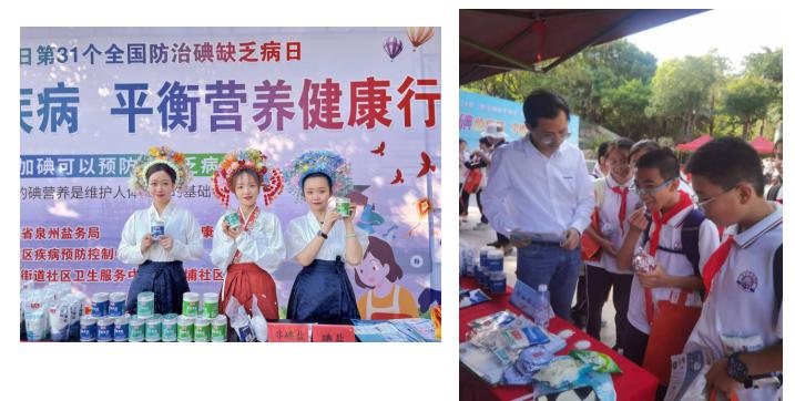 泉州鹽業(yè)聯(lián)合市衛(wèi)健委、疾控中心等多家單位,在全市范圍內(nèi)設(shè)置11個(gè)宣傳點(diǎn),開展防治碘缺乏病日宣傳活動。工作人員從補(bǔ)碘原理、缺碘危害、鹽品辨別、適用人群等多角度普及宣傳用鹽知識,還以身著蟳蜅女簪花服裝、邀請群眾品鹽、發(fā)放“鹽小福”精美禮品等方式拉進(jìn)與群眾距離,引導(dǎo)市民合理補(bǔ)碘,科學(xué)購買和使用食鹽。