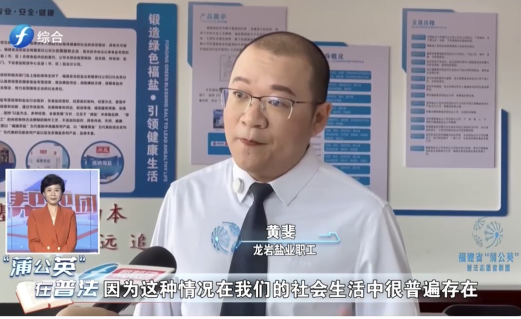 (圖注:“福建電視臺(tái)綜合頻道“蒲公英在普法”欄目組”專題報(bào)道龍巖鹽業(yè)普法情景劇,龍巖鹽業(yè)職工接受采訪)