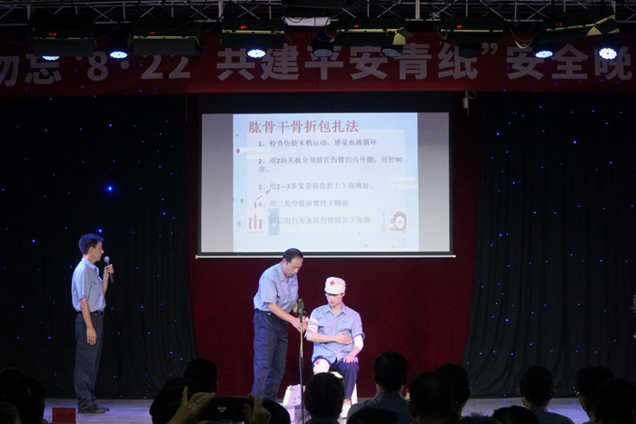 一曲《生命至上》拉開了晚會的序幕,配樂詩朗誦《安全為天 生命至上》以飽含感情的言語敲打著觀眾的心,表達了安全生產永遠在路上的堅定信念;一曲《安全》改編合唱,用優美的旋律提醒人們安全隱患無處不在,要時刻保持警惕,防范于未然;音舞快板《預防為主話消防》,用歡快的節奏及精彩的表演向觀眾呈現并傳達消防安全的理念;舞蹈《滅 火 逃》《有你在》,展現了“新青山”安全守護者們的蓬勃生命力;視頻《安全宣誓》,是對安全的鄭重承諾;小品《消防演練》、相聲《空間有限 危險無限》《現場急救演示》《小合唱》等節目道出了安全生產的重要意義,讓筑牢兜實安全防線的理念深入人心;現場觀眾互動環節把整個晚會氣氛推向高潮。最后,晚會在小合唱《明天會更好》的美好祝愿下落下帷幕。