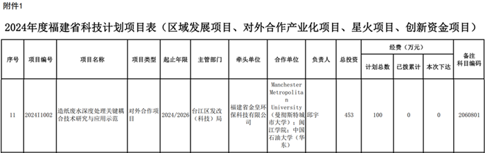 近日,金皇環保牽頭申報的《造紙廢水深度處理關鍵耦合技術研究與應用示范》項目通過專家評審,獲2024年福建省科技廳產業技術開發與應用計劃(對外合作)項目立項。