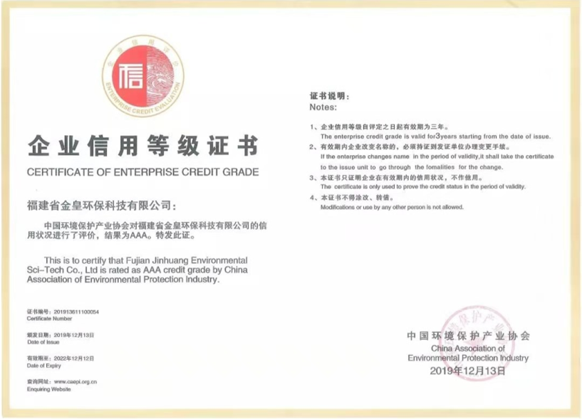 成立僅四年,金皇環保以專業的技術實力和質量為先的口碑獲得社會認可,被推選為福建省環境保護產業協會環評分會主任委員單位。2019年12月獲中國環境保護產業協會AAA信用評級,成為省內首家獲此殊榮的環保咨詢機構。辛勤耕耘,苦煉內功,金皇環保相繼取得國家高新技術企業、福建省“科技小巨人”領軍企業、福州市“專家工作站”等榮譽。在環評分會主任委員單位任上,金皇環保發布《關于全力支持我省排污許可證核發的倡議書》,攜會員單位為我省實現排污許可證核發目標助力,并始終致力于“倡導公平有序競爭、提高行業整體水平、促進行業內部交流、提升環評公眾形象。”