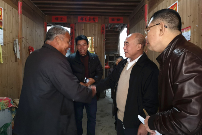 12月20日,福建省輕紡(控股)有限責(zé)任公司黨組書記、總經(jīng)理黃文定一行分別到周寧縣瑪坑鄉(xiāng)下坑村、禮門鄉(xiāng)梅渡村實(shí)地調(diào)研扶貧攻堅工作,看望駐村書記林繼業(yè)、張帆,并慰問當(dāng)?shù)刎毨簟G嗌郊垬I(yè)黨委書記林小河、省鹽業(yè)集團(tuán)公司常務(wù)副總經(jīng)理莊燦陽等陪同調(diào)研。